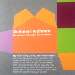 "My Home is my Castle, das ich mir bastle. Wenn auch Sie genug von den Querelen, Scherereien und Umtrieben in Ihrer Wohnumgebung haben und ein Heim Ihr Eigen nennen wollen - bitter, hier ist die Bastelanleitung dazu: Die Figur den ausgezogenen Linien nach ausschneiden, die gestrichelten Linien ritzen und das Ganze zu Ihrem Eigenheim zusammenstecken. Et voilà! Ein Wohnblock aus den 60ern. Man kennt sich. Frau Egloff lobt die prima Nachbarschaft. Auch die alleinstehende Frau Pfarrerin und die Elsässerin Huguette mit dem illegalen Hund machen grundsätzlich keine Probleme. Doch als im Haus gegenüber ein Mann tot aufgefunden wird, ist es mit der Ruhe vorbei. Das Publikum erwartet ein ziemlich heimeliger Abend, mit gezielter und unfreiwilliger Komik! |