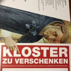 | Inhalt | Seit Jahrhunderten leben Schwestern und Brüder in verschiedenen Gemeinschaften auf der ganzen Welt die Ideen und Visionen von Dominikus. Doch es wird ruhiger in den Klöstern der Schweiz. Langsam aber sicher überalten und entvölkern sie sich. Nachwuchs ist nicht in Sicht und gute Ideen für die sich leerenden Klöster sind gefragte denn je. Müssen sie gar verschenkt werden? Der bekannte Autor Paul Steinmann geht in seinem Stück dieser Frage nach und lässt dazu dominikanische Persönlichkeiten aus acht Jahrhunderten, aber auch Immobilienfachleute, eine SP-Politikerin, einen Moderator und einen Denkmalpfleger auftreten. Unter der Regie von Annette Windlin schlüpfen sieben Schauspielerinnen und Schauspieler in die unterschiedlichsten Rollen. Sie erzählen spielend und singend aus der Geschichte des Dominikanerordens. Das Publikum sieht sich dabei in der Rolle der Interessenten für die Immobilie und die angekündigte Klosterführung entpuppt sich mehr und mehr als Zeitreise. So melden sich auch die Weggefährten von Dominikus zu Wort und lassen die heftig geführte Diskussion, ob das Kloster tatsächlich verschenkt oder in eine Brunout-Klinik umgebaut werden soll, vorübergehend verstummen. So einfach lässt sich der dominikanische Geist nämlich nicht vertreiben. Die Inszenierung über fünf Stationen wird mit Live-Musik umrahmt. |