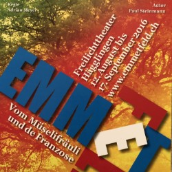 Die Erzählung im Freilichttheater EMMETFELD dreht sich um die Frage, weshalb das Dorf am Maiengrün 1798 von den vorrückenden Franzosen verschont wurde. Das sagenumworbene aber ebenso kraftvolle Müselifräuli und weitere Figuren wie der Hausierer Brönnimann sowie ein abgeklärter Eremit spielen wichitge Rollen. Und wird das Geheimnis um den ermorderten französischen Soldaten geklärt? |