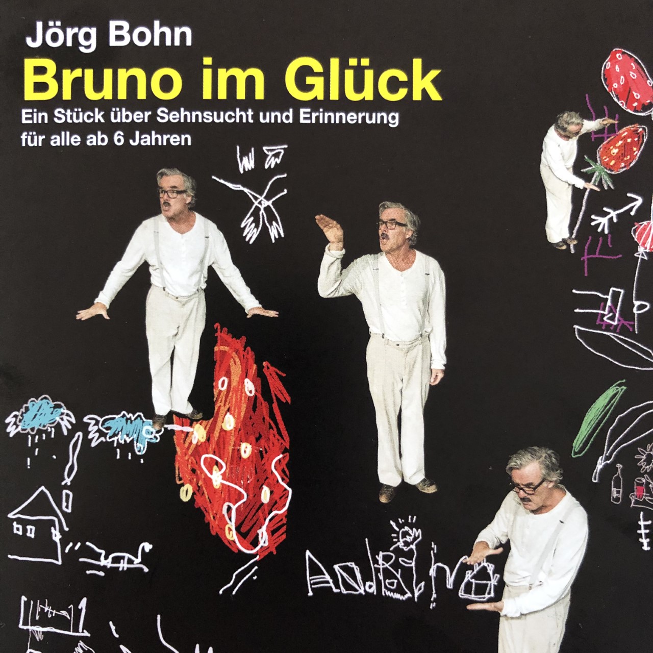 An seine eigene Kindheit hat Bruno viele Erinnerungen. Eine davon ist jene an den Estrich, der sich im Haus seiner Grosseltern befand. Dort oben, wo ein Kamin durchführte, standen Kästen und Schränke, in denen sich Dinge stapelten, die man nicht alle Tag brauchte. Unter anderem Konfitürengläser für Grossmutters Erdbeermarmelade, Brunos süsse Idee vom Glück. "Bruno im Glück" erzählt, wie der Junge auf dem Estrich nicht nur Russ und Staub entdeckt, sondern auch etwas ganz Anderes: die Fantasie und die Sehnsucht. Mit vielen Bildern und wenigen Worten geht das Stück auch der Frage nach, was es braucht, damit Kommunikation gelingt und wo das Glück beginnt. |